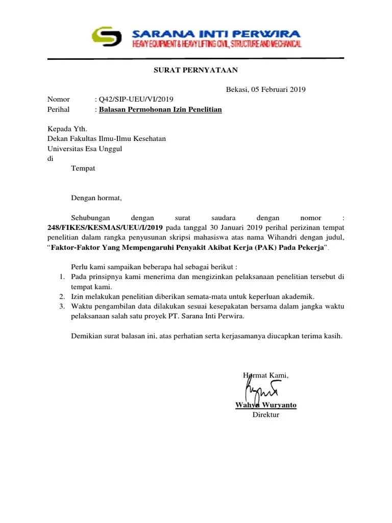 Surat balasan ijin penelitian perusahaan terkait. 90 lampiran 1 surat permohonan ijin penelitian dari fakultas. Contoh surat balasan penelitian skripsi by bagus1kridha. Contoh surat permohonan izin penelitian skripsi profesional bagi seorang mahasiswa i ketika hendak melakukan penelitian untuk membuat karya . Untuk mengajukan permohonan penelitian seorang mahasiswa akan membutuhkan surat pengantar dari universitas yang menjelaskan tentang maksud .